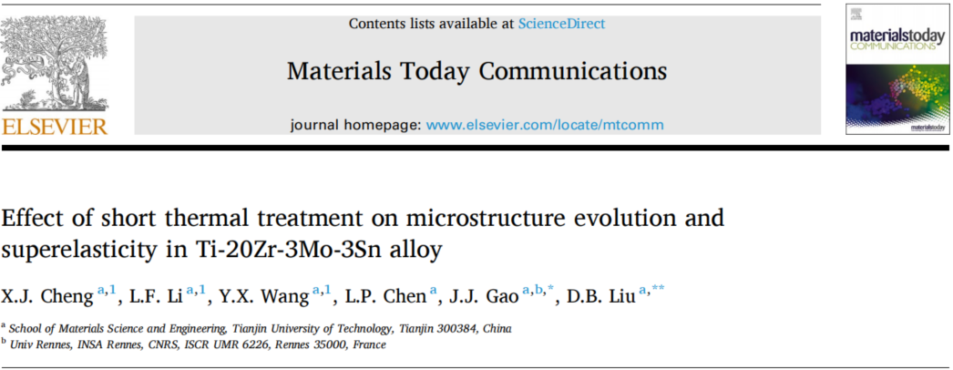 近日,伟德国际VICTOR1946材料成型及控制工程专业2022级本科生程相杰在青年教师高敬钧的指导下,以第一作者在《Materials Today Communications》期刊上发表了题为“Effect of short thermal treatment on microstructure evolution and superelasticity in Ti-20Zr-3Mo-3Sn alloy”的学术论文。刘德宝老师和高敬钧老师为共同通讯作者。文章链接:https://doi.org/10.1016/j.mtcomm.2025.111589。