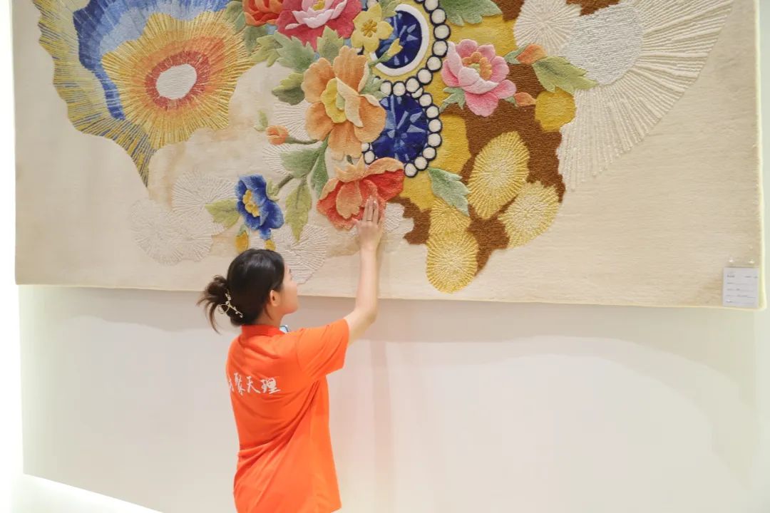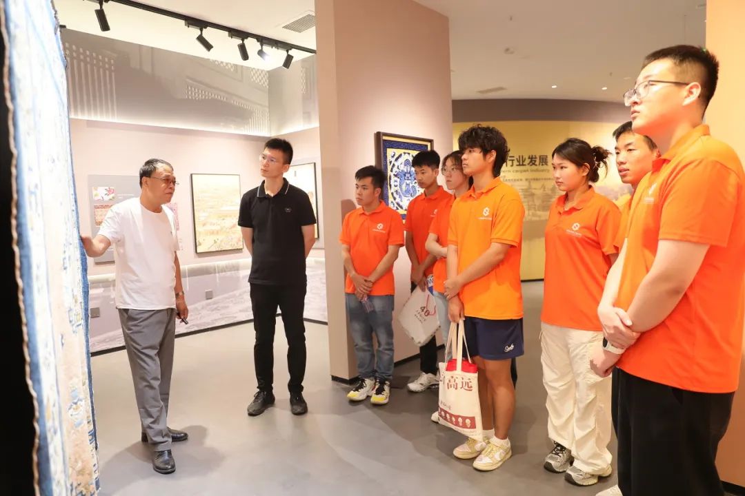 在织采宫内,工作人员为实践团成员展示了依托废弃塑料瓶回收利用制作的地毯样品,加深了实践团成员对材料加工的新认知。同时,实践团成员在场馆内学到了地毯的历史变革,看到了科技赋能非遗新的展现形式,了解到地毯文化传播的新模式,感受到了新质生产力助推地毯生产的新工业体系。