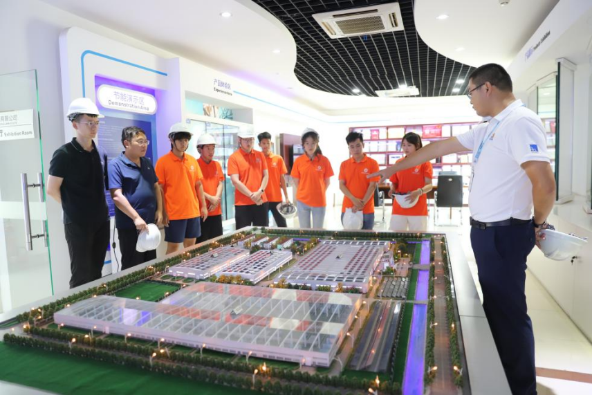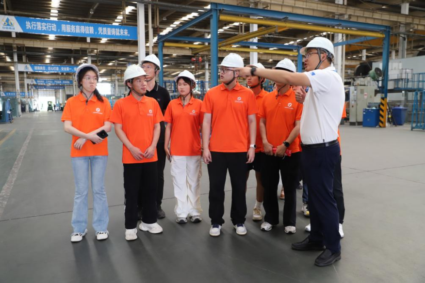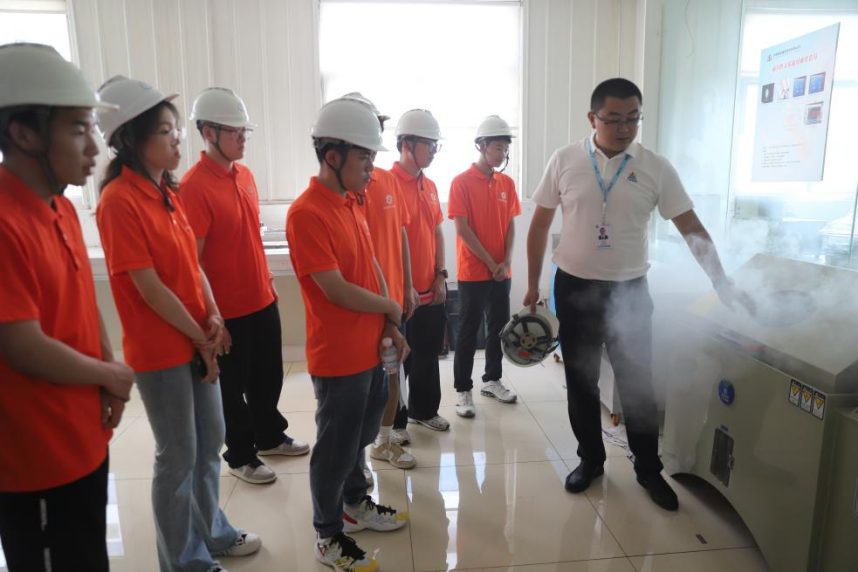 第四站,实践团直击天津南玻高端节能玻璃生产一线。作为国内玻璃行业的领军企业,天津南玻拥有国际先进的Low-E(低辐射)镀膜玻璃、三银玻璃等生产线,其产品广泛应用于绿色建筑、光伏新能源等领域,是践行国家“双碳”战略、推动建筑节能降耗的“透明力量”。在天津南玻节能玻璃有限公司钢化主任工程师、工段主任,兼任公司工会主席童帅的带领下,实践团深入了解了该公司的业务范围,技术成果和代表性工程等等,深入一线生产车间参观学习。经过童工的介绍和答疑解惑,实践团的同学们表示收获颇丰。